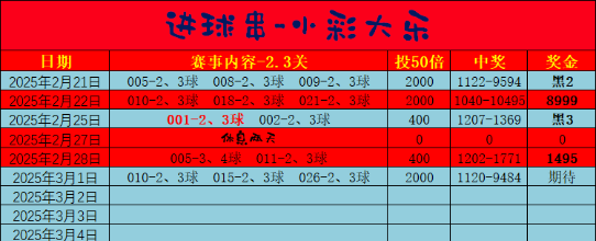 2025-03-01日 -启航进球、亮剑进球、智慧进球、狼图腾进球、神针进球、温柔进球、辉煌进球、皇冠进球、锦鲤进球、进球-小彩大乐
