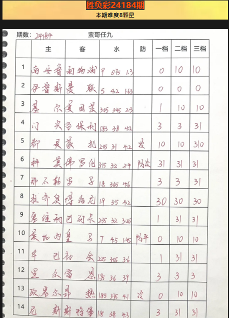 2024-11-24日 胜负彩24184期