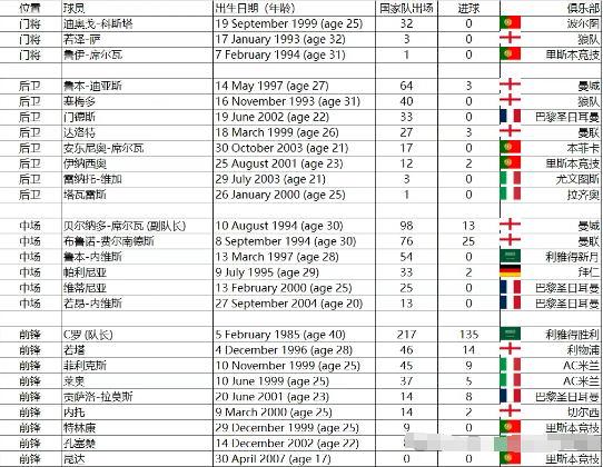 葡萄牙大名单: